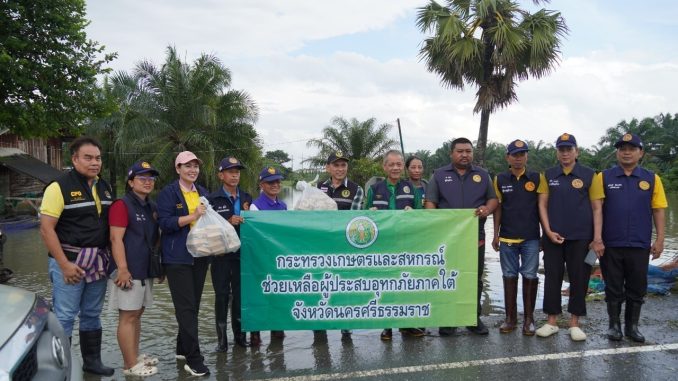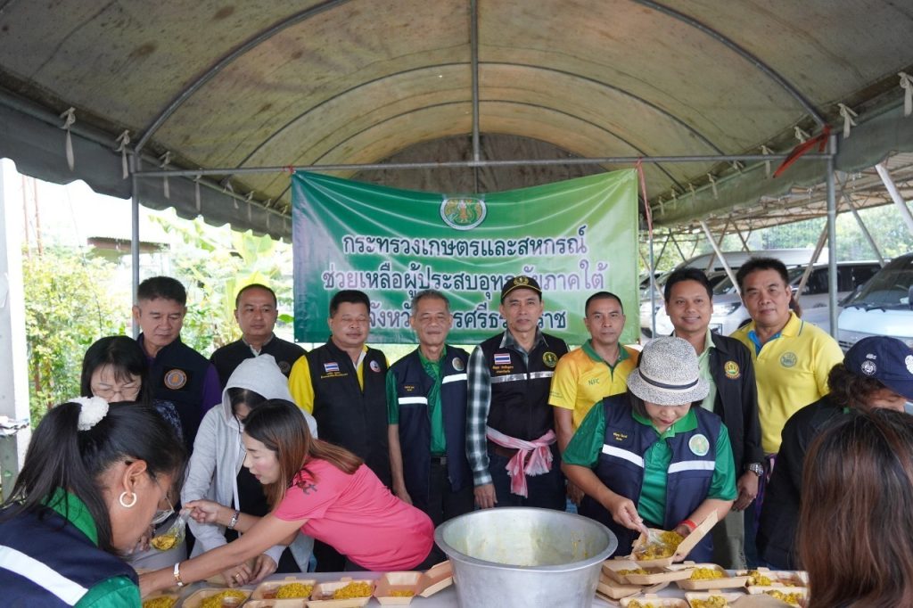 หน่วยงานภาครัฐในสังกัดกระทรวงเกษตรและสหกรณ์ตระหนักถึงปัญหาความเดือดร้อนของพี่น้องประชาชน จึงได้ร่วมกันเปิดครัวบริจาคอาหารและน้ำดื่มแจกจ่ายให้ผู้ประสบภัย โดยได้รับความอนุเคราะห์จากนายชนินทร์ ทิพปภาสมิทธิ์ ปศุสัตว์จังหวัดนครศรีธรรมราช ให้สถานที่สำนักงานจัดเตรียมอาหารและน้ำดื่ม